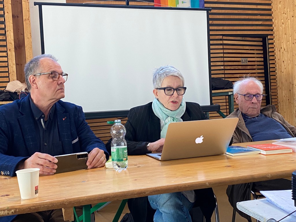 Maître François Kaldor a ajouté que l’interdiction du Parti communiste en 1956 était liée au réarmement de la République fédérale. Il a présenté les bases juridiques et économiques qui ont encadré les événements, avec de nombreux exemples. Il nous a donné un aperçu juridique des bases légales et économiques des deux Etats allemands, en faisant référence à la Constitution de la RDA et à la Loi fondamentale inachevée de la RFA. Il a illustré la diversité des deux États allemands à cette époque.